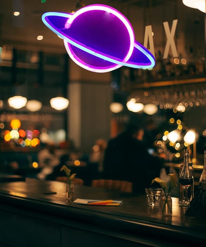 - 【3D Higher End Neon Art Design】Planet LED sign light neon, Thanks to the addition of a clear PVC board, our neon light looks higher end and is not easily deformed.