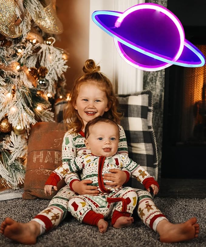 Planet Neon Signs Festival Wall Neon Lights Sign Art Decor Light for Christmas Home Decoration Bedroom, Lounge Office Wedding Christmas Valentine's Day Party Operated by USB